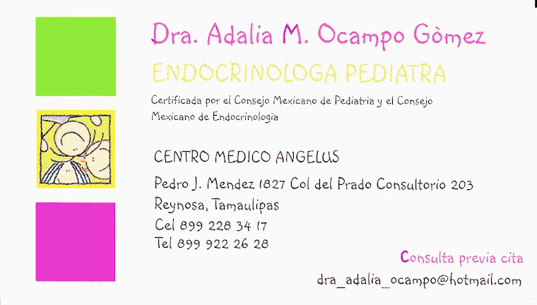 Dr. Adalia Ocampo Gomez is one of the very few Pediatricians in the City of Reynosa that is specialized in Endocrinology. She is a certified physician graduated from the Universidad Autonoma de Nuevo Leon & the Universidad Autonoma de Coahuila.